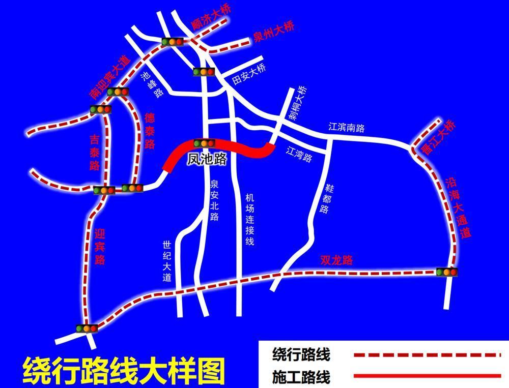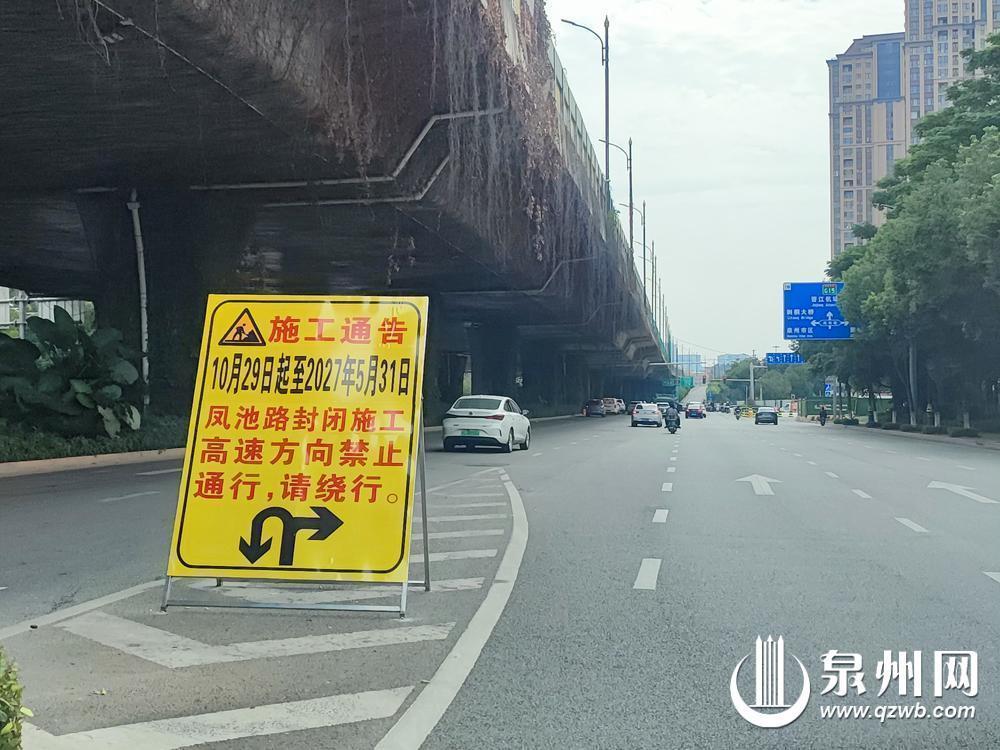 凤池路池峰路至刺桐大桥主路明起封闭施工 持续至2027年5月31日,中心市区往池店高速需绕行 记者昨日从晋江交警部门了解到,因晋江市凤池路(池峰路—刺桐大桥)快捷化改造工程施工需要,交警部门将对封闭施工的路段采取交通管制措施,管制时间为2025年10月29日10时起至2027年5月31日24时止。