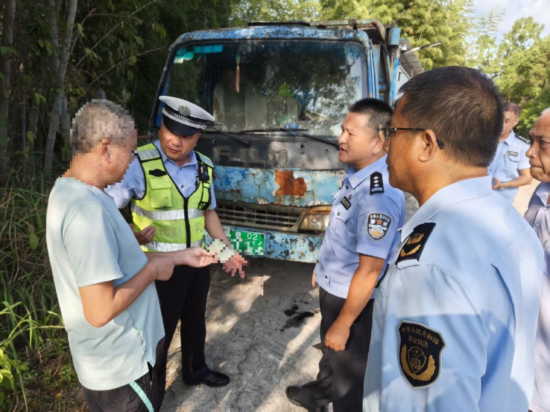 永安交警巡查发现一辆号牌为赣0****6的变型拖拉机疑似达到报废标准,但仍在道路上行驶。民警立即与农业农村局联系,农机部门经外调核实确认并立即进行侦查,发现该车辆行驶轨迹较少,并常利用中午或傍晚时间转运专用机械,躲避查处打击。掌握规律后,民警继续深入研判,分析其可能的落脚点,最终在辖区麻岭村成功查获该报废变型拖拉机。 泰宁