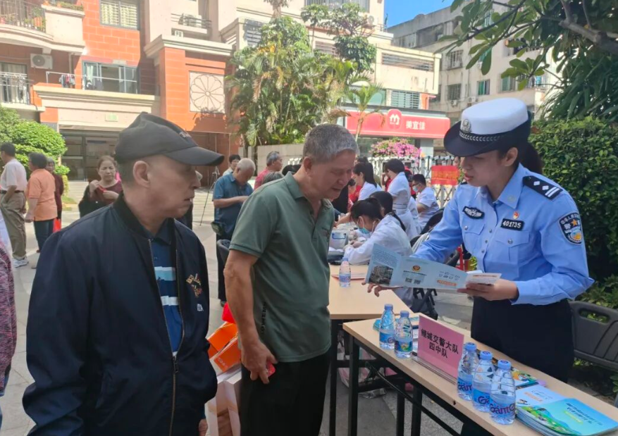 鲤城 鲤城交警大队组织民警走进百源社区,开展老年人交通安全宣传活动。活动中,民警紧密结合老年人日常出行特点,对过马路、乘坐交通工具、驾乘电动自行车等常见交通场景,通过图片展示、交通安全宣传车播放警示视频等直观方式,清晰揭示闯红灯、不走斑马线、随意横穿马路等违法行为的潜在危害。 四中队民警走进明光社区,通过设置宣传摊位、分发图文并茂的安全折页等形式,提醒老年人警惕闯红灯、骑行代步车不遵守规则等行为的风险,切实增强他们的交通安全意识和自我保护能力。