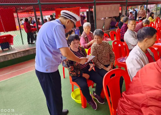 泉港 重阳节前夕,泉港交警大队深入辖区菜堂村,结合农村老年人出行特点,通过发放图文并茂的宣传手册、播放通俗易懂的警示短片、面对面讲解典型案例等形式,重点围绕“骑乘电动自行车佩戴安全头盔”“过马路遵守交通信号灯”“不乘坐农用车等违法载人车辆”等关键知识点展开宣讲。 “以前总觉得戴头盔麻烦,今天听警察同志讲了事故案例,才知道这是保命的‘防护盾’!”活动结束后,一位老人拿着宣传手册感慨道,不少老年人表示不仅学到了实用的交通安全知识,更感受到了公安机关的关怀与温暖,今后会主动规范出行行为,并向身边的亲友传递交通安全理念。 重阳节这一天,泉港交警到辖区百寿宴现场开展重阳节老年人交通安全宣传。