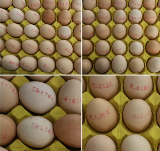 ▲行走的安全提示:将交通安全标贴印在鸡蛋上,让日常食材秒变“移动安全宣传员”,拿取间就能瞥见警示。 此次活动进一步增强了辖区国省道沿线群众的交通安全意识,有助于群众养成良好出行习惯,从源头上预防和减少道路交通事故,营造了文明、有序、畅通的交通环境。 |