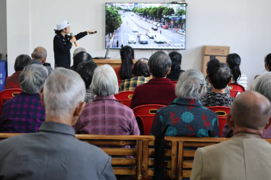 活动中,民警辅警聚焦国省道沿线农村群众,尤其将“一老一小”群体作为重点关注对象,通过发放宣传资料、摆放警示展板、互动问答、观看事故视频四种形式,让交通安全知识更直观、更易理解。
