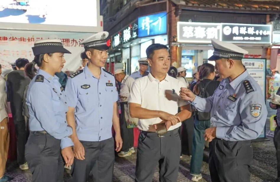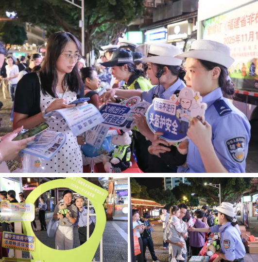 晚上,漳州交警来到古城,以“依规骑行,平安相伴”为主题开展普法宣传活动。 通过设立政策咨询台、发放解读手册、开展有奖知识竞答等形式,面对面为市民解答非机动车登记上牌、通行规则、违法处理等热点问题,重点解读《办法》中关于规范停放、安全充电、头盔佩戴等新要求,引导群众自觉抵制加装改装、闯红灯、逆行等违法行为。