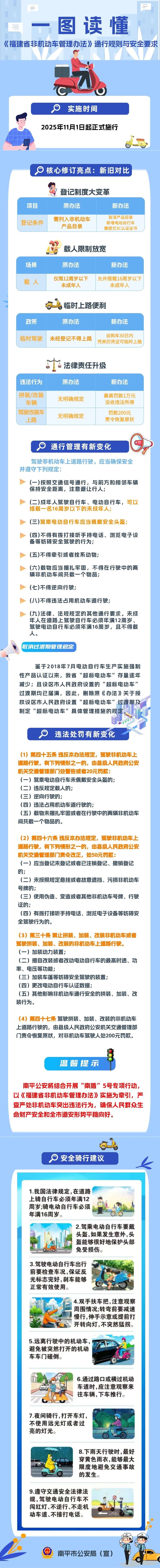 强化普法 矩阵联动宣推 为进一步配合新《办法》的实施,南平市道安办与市司法局联合,围绕新修订的《福建省非机动车管理办法》,组织开展了“蒲公英”普法主播普法短视频征集展播活动,积极回应群众关切,做好相关法律宣传工作。 同时,依托公安微信公众平台、视频号等新媒体平台,持续发布图文解读与短视频,生动讲解修订后的《福建省非机动车管理办法》重点,引导群众共同关注、积极参与。