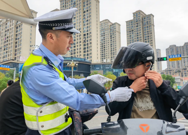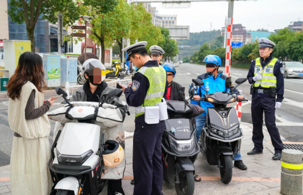 聚焦安全 查处与教育并行 为确保新规落地见效,引导市民规范出行,11月1日上午,南平各地公安交警在城区主干道、商圈周边等车流人流密集路段,集中开展专项整治行动。重点查处驾乘电动车未戴头盔、违法载人、拨打接听手持电话、加装电动自行车遮雨蓬等显见性违法行为,开出了多张处罚单。 在执法整治的同时,全市交警部门坚持整治与宣教深度融合,通过发放《致电动车驾驶人一封信》、摆放警示案例展板、组织观看违法警示宣传片等形式,向群众直观讲解不戴头盔、违法载人的法律后果与安全风险。 全面推行轻微违法“五选一”宣教模式,对未成年人违规载人等典型情况,通过朋友圈集赞、抄写交规等方式进行警示教育。创新实施“正向激励”机制,向文明守法市民赠送“交警小熊”,以柔性举措传递执法温度,引导广大交通参与者从“被动遵守”向“主动践行”转变,确保新规在首日即得到严格贯彻执行,为后续长效管理奠定坚实基础。