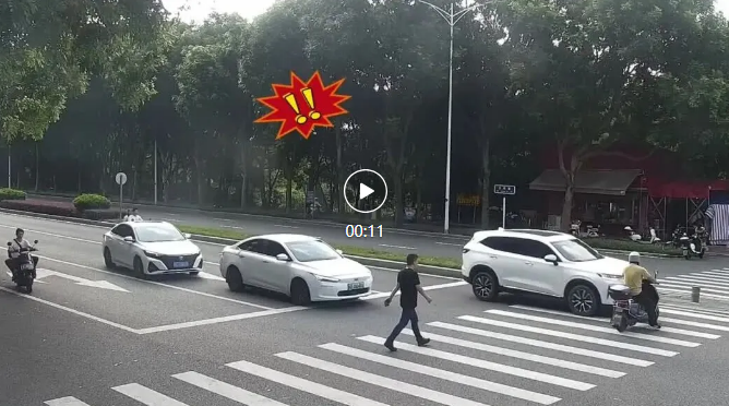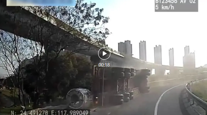 2025年9月5日上午,顾某某驾驶小型普通客车行驶至人行横道时,遇相邻车道内车辆停车让行的情况下,未注意观察前方路况,与沿人行横道过街由陈某某驾驶的电动自行车发生碰撞,造成陈某某受伤及车辆受损的道路交通事故。 法律链接 《中华人民共和国道路交通安全法》 第二十二条第一款 “机动车驾驶人应当遵守道路交通安全法律、法规的规定,按照操作规范安全驾驶、文明驾驶。” 《中华人民共和国道路交通安全法》 第四十七条第一款 “机动车行经人行横道时,应当减速行驶;遇行人正在通过人行横道,应当停车让行。” 交警提醒 路口、公交站、隔离带、绿化带等区域易突发 “鬼探头”,行人或非机动车突然冲出易引发交通事故。当出现视线被遮挡的情况时,驾驶人、行人均应谨慎慢行,注意观察,留足反应空间,避免猝不及防发生意外。 02 超速转弯,半挂车轰然倒下