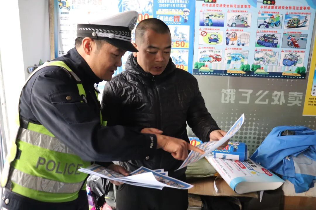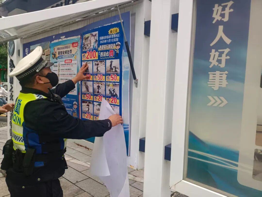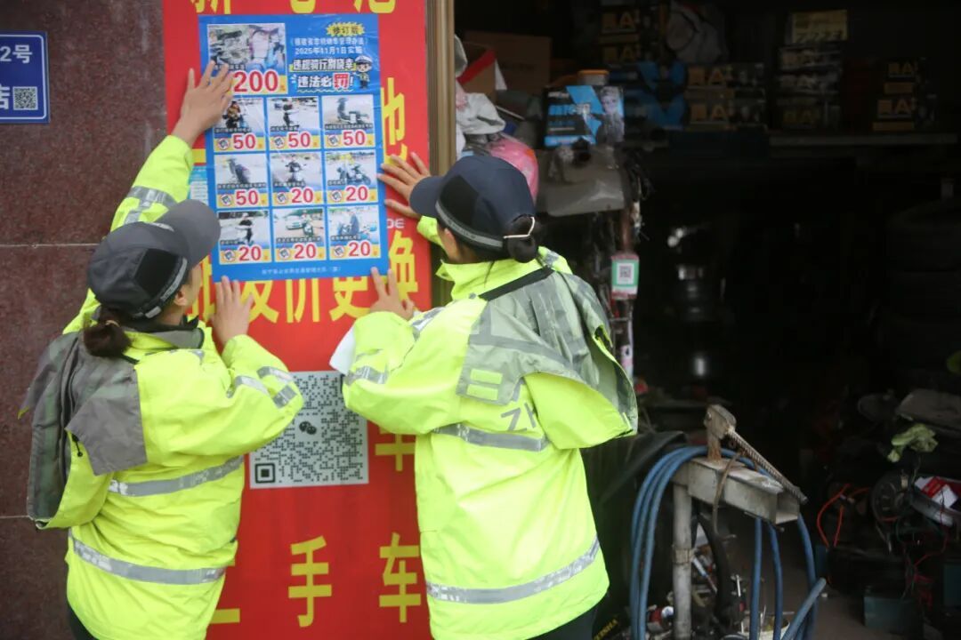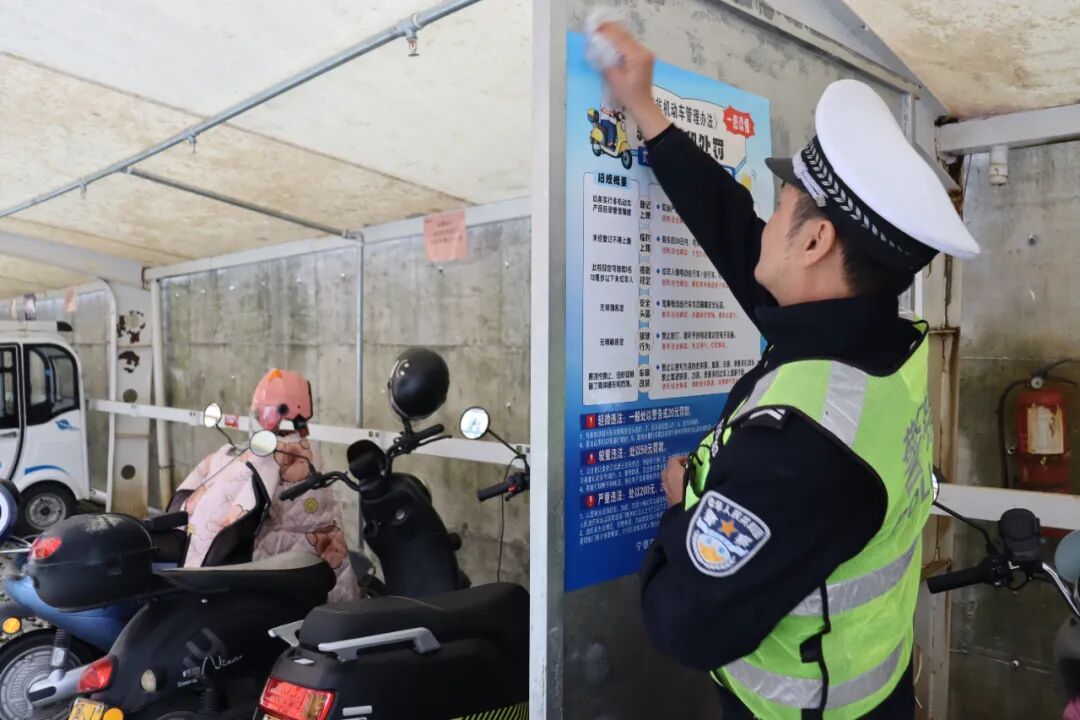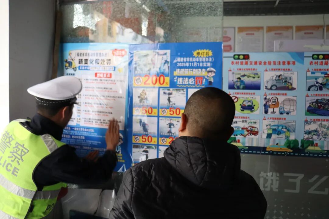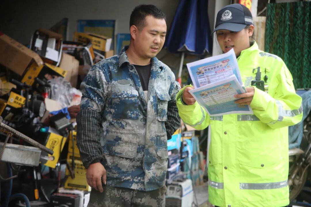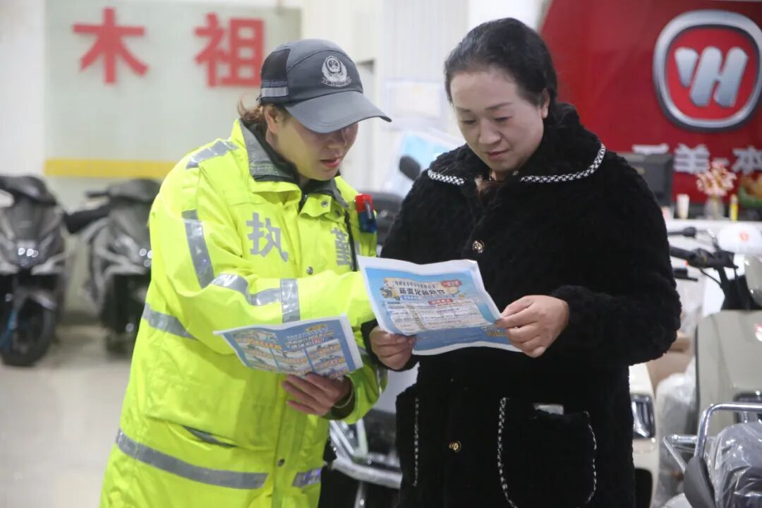 交警走进非机动车生产、销售及维修店铺,通过张贴海报、发放传单等方式,开展修订后的《福建省非机动车管理办法》内容主题宣传。