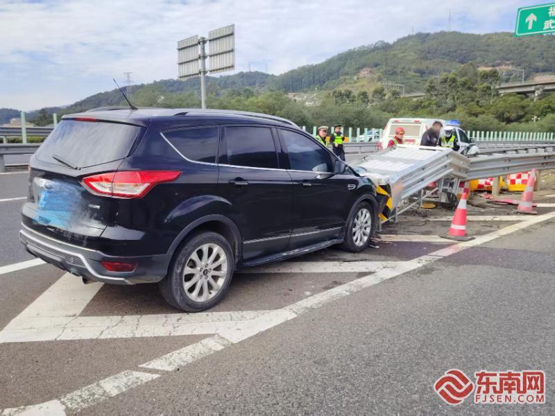 事故现场。宁德高速行政执法支队供图 幸运的是,车上人员全程规范系好安全带,成功规避险情,最终无人伤亡。事故发生后,宁德高速执法支队赛岐中队迅速响应,立即启动“5+N”联动机制,联合高速交警、路勤等相关部门火速赶赴事故现场。