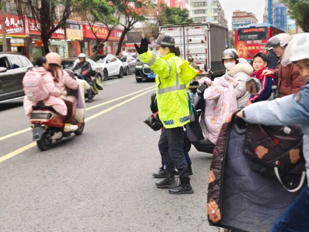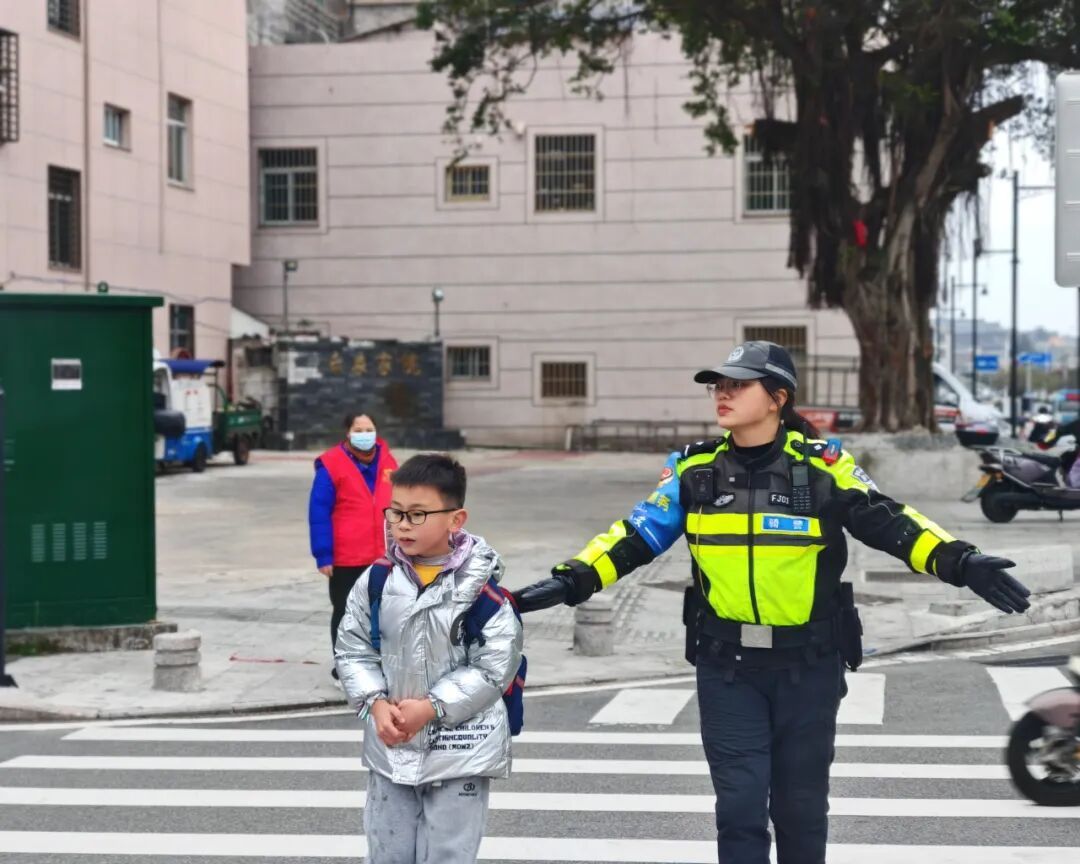 二、常态护学岗,守护平安路 针对辖区部分学校周边交通环境复杂、人车流量大的情况,平潭公安交警科学部署警力,在重点时段、关键路口设立常态化“护学岗”。执勤民警和辅警每日提前到岗,指挥疏导交通,引导学生安全通过马路,规范车辆有序停放,有效缓解了上学放学高峰时段的交通压力,为学生们搭建起一道坚实的安全屏障。