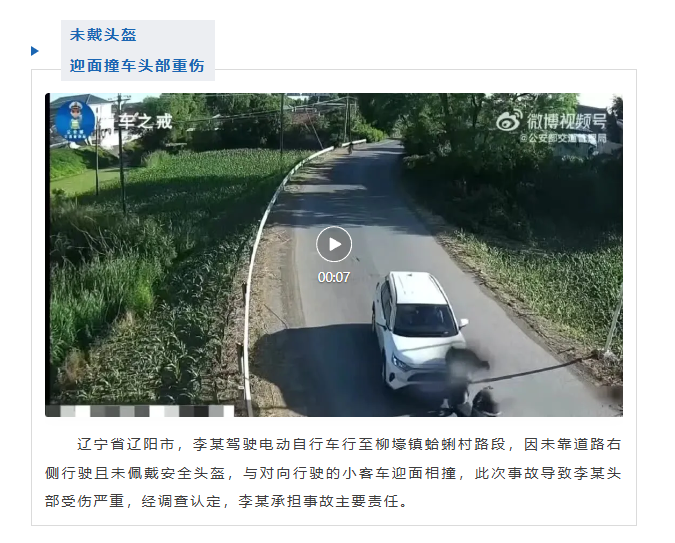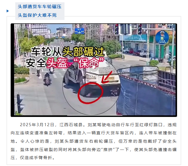 两轮车安全防护性能弱,在交通事故中往往造成较为严重的伤亡后果,这类事故中约80%为颅脑损伤,而小小的安全头盔,就是"保命神器"!