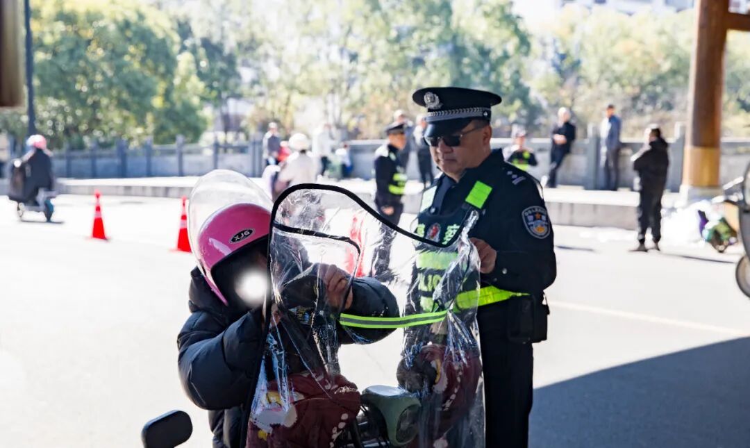 “师傅,电动车加装遮阳伞不仅违法,遇横风极易失控!”“小朋友,乘坐电动车一定要戴好头盔,这是保护头部的重要防线!”在泰宁城区,公安民辅警忙碌于交通整治的身影,已成为一道流动的“安全风景线”——这正是泰宁公安深入推进“全警管交通”工作的生动实践。
