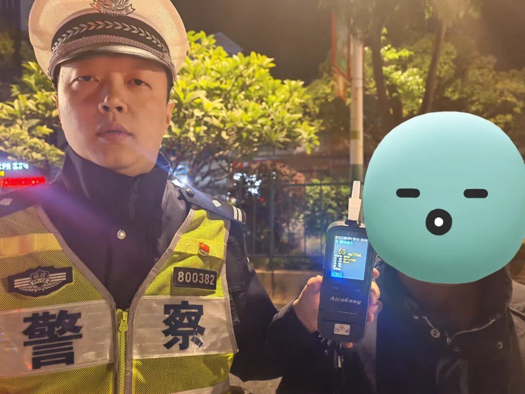 NO.2 11月22日22时41分许,黄某魁驾驶闽F19**A号普通二轮摩托车途经曹溪路时,被新罗交警大队二中队执勤民警拦下检查,经现场酒精呼气测试,结果显示59mg/100ml,已达酒后驾驶标准,随后民警依法对其交通违法行为作出相应处罚。