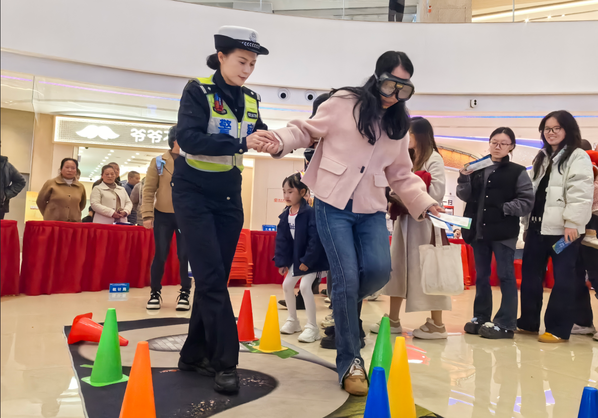 此次活动设置VR酒驾模拟、有奖问答、“礼敬宪法”打卡、法治套圈等趣味互动环节,吸引众多市民参与。一大队民警全程参与互动,在VR酒驾模拟体验中,直观展示酒驾后视觉模糊、操作迟缓等状态,让市民深刻感受酒驾危害;有奖问答环节围绕高速交通安全知识出题,现场氛围热烈,有效提升市民学习积极性。