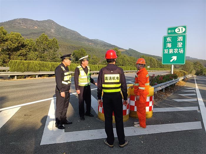 为切实做好辖区道路交通安全防范工作,保障人民群众生命财产安全,12月6日,漳州高速执法支队一大队漳州南中队深化“5+N”联动机制,联合高速交警、高速养护站、机维站等部门,对漳武高速公路九湖段开展安全隐患排查整治行动。 行动期间,执法人员贯彻“早发现、早排除、早处置”的原则,联合高速交警部门根据辖区事故规律、日常管控经验以及群众反映的突出问题,对沿线各类交通安全设施展开了系统、深入的核查。在道路中央隔离区域,执法人员逐一查验防撞柱的牢固程度、反光标识的清晰度及结构完整性,确保其在车辆意外冲击下能有效发挥作用。针对路侧防护网,执法人员联合养护部门细致排查是否存在破损、锈蚀、缺失或高度不足等情况,防止行人、动物闯入高速区域。对于路侧防撞护栏,则重点检查其连续性、端头处理是否规范、螺栓是否紧固。此外,各类交通标志标牌也被纳入检查重点,包括其设置位置是否合理、信息是否准确清晰、支架是否稳固、反光膜是否完好等,确保在夜间或恶劣天气下仍能充分发挥指示、警示功能。