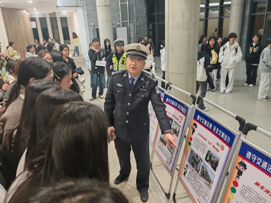 此外,交警还在校园内设置宣传展板,发放交通安全宣传单,通过图文结合的方式,详细解读交通法规要点、事故预防技巧及风险防范措施,引导师生养成“上车系安全带、骑车戴头盔、过街看信号”的良好习惯。