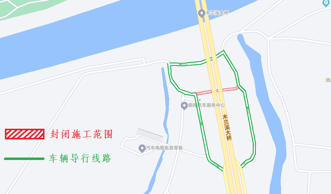关于莆田市荔城区新度镇木兰溪大桥下方辅道占道施工交通管制的通告 因荔城区生态农业示范区建设暨耕地整治提升项目施工需要,施工期间需占用木兰溪大桥下方辅道,为保证施工期间道路交通安全、畅通,根据《中华人民共和国道路交通安全法》第三十九条规定,决定对新度镇木兰溪大桥下该路段实行临时交通管制。具体通告如下: 一、管制时间: 2025年12月19日至2025年12月31日 二、管制要求: 木兰溪大桥下方辅道实行全封闭施工,行人车辆向木兰溪方向绕行100m。