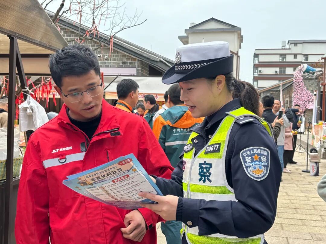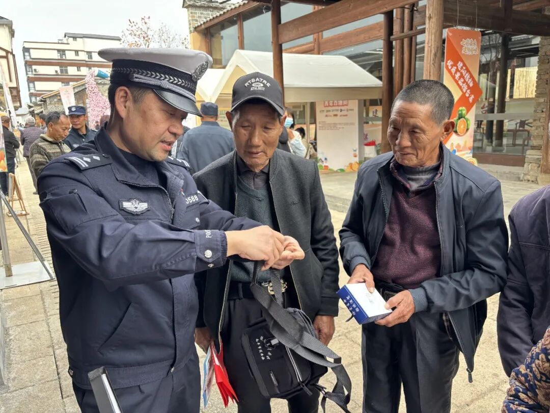 12月12日,“福品福递·快递助农——建阳桔柚为你甜”直播活动在建阳区莒口镇马伏村举办。南平公安交警以此为契机,在活动现场设立宣传驿站,向参与活动的快递员开展《福建省非机动车管理办法》等交通安全法律法规宣传,并向现场的老年人发放反光背包等宣传品,传递“被看见,才安全”的交通安全常识,切实保障国省道沿线老年人出行安全。