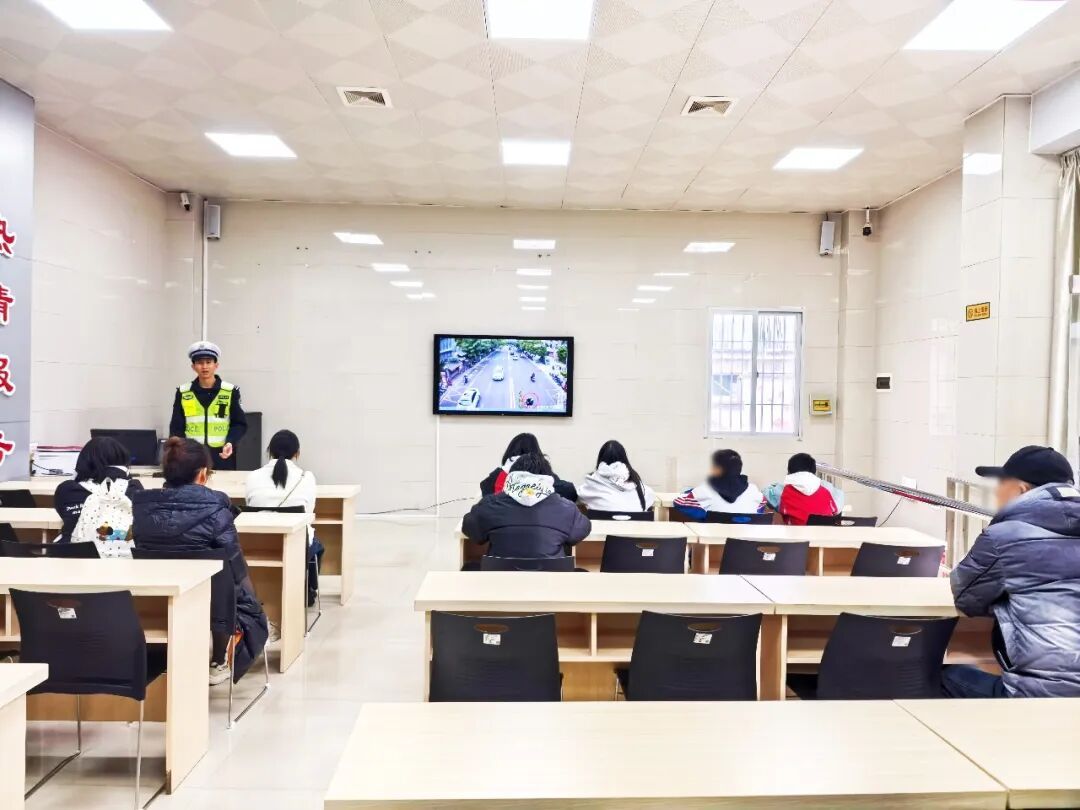 ▲“以案释法”开展警示教育 “未成年人在道路上驾驶电动自行车必须年满16周岁,且不得载人。”民警结合《福建省非机动车管理办法》,并通过播放涉及未成年人违法骑行的典型事故案例视频,对他们进行了交通安全警示教育。同时,民警依据《中华人民共和国民法典》相关条款向5名家长明确指出:“若未成年人骑行造成他人损害,监护人需承担侵权责任。作为家长,务必切实履行监护职责。”考虑到5名少年系初犯,民警在对其进行严肃警示教育后,要求孩子及家长共同签署了交通安全承诺书;同时将处理结果通报到孩子所在学校。