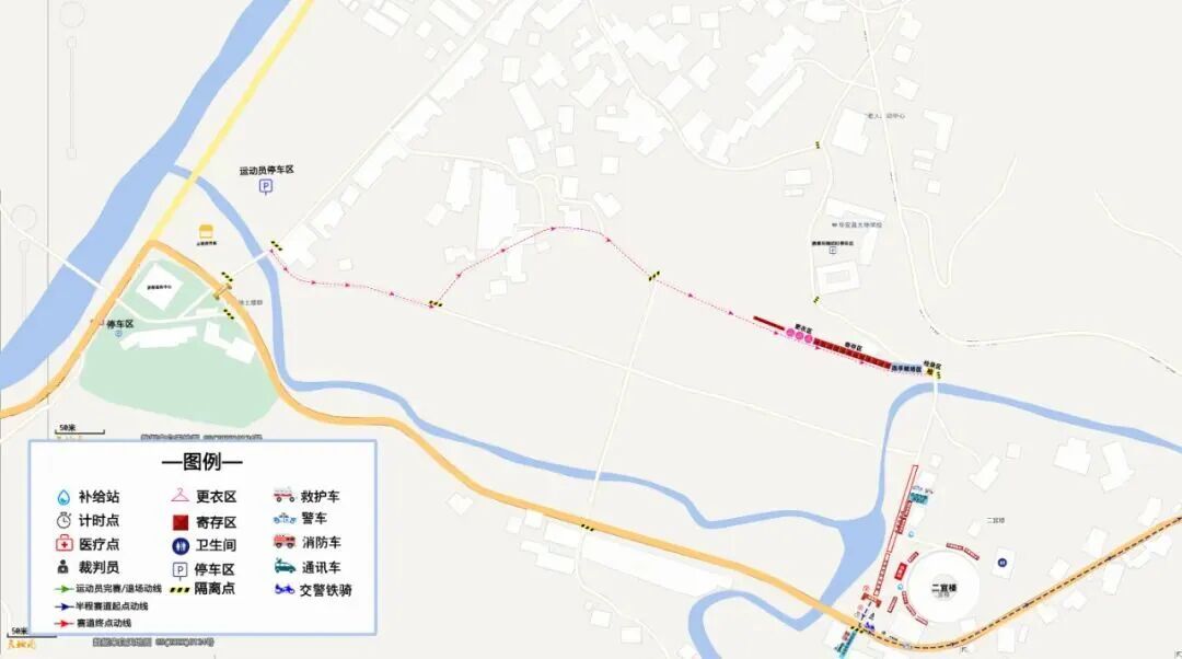 三、临时停车区(详见图示) 在赛道起点、终点外围区域,以及仙都华仙茶都、二宜楼游客中心停车场将设置临时性停车区域,参赛运动员及观赛车辆根据交通指挥人员现场引导,有序停车。