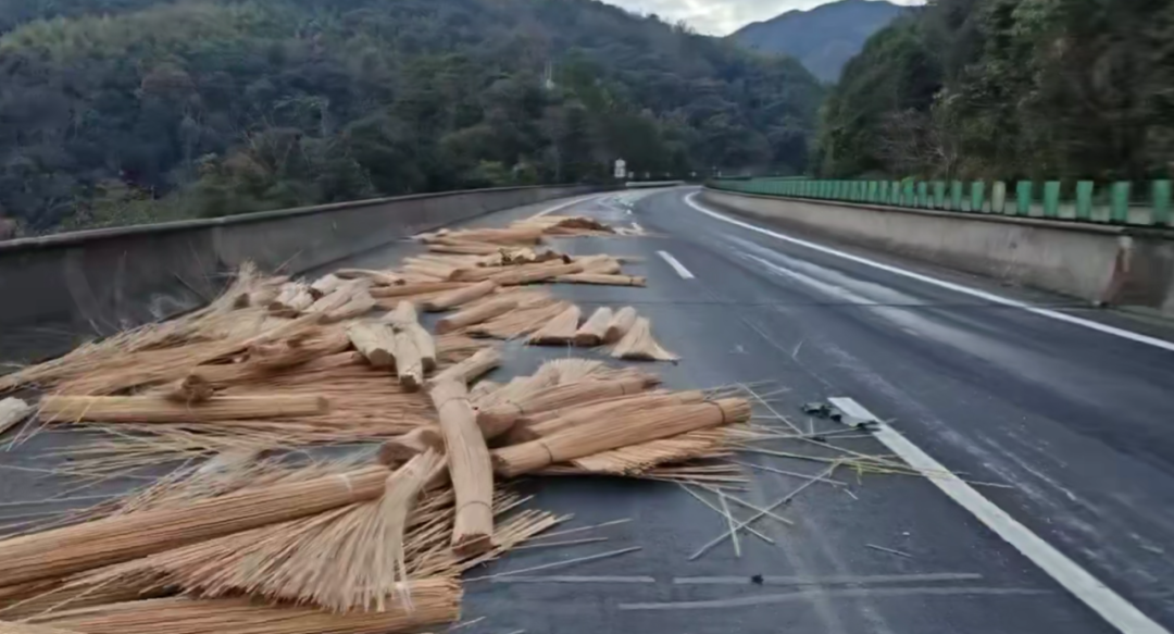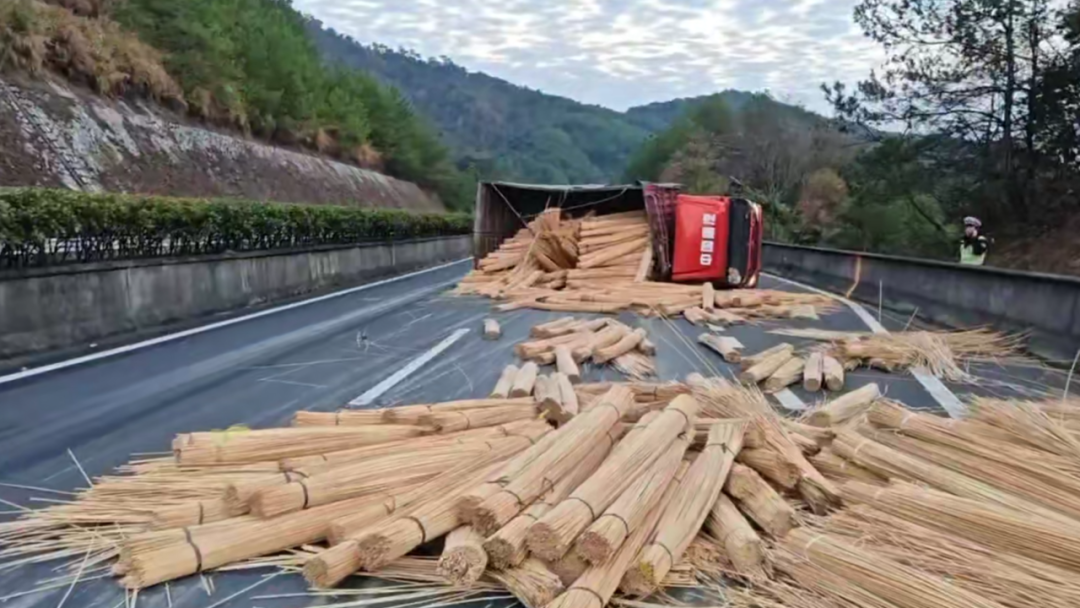 2025年12月16日16时40分许,福银高速(下行)332公里300米处,一辆满载12吨竹筷原料的轻型货车发生侧翻,货物散落,占用了主车道及部分超车道。