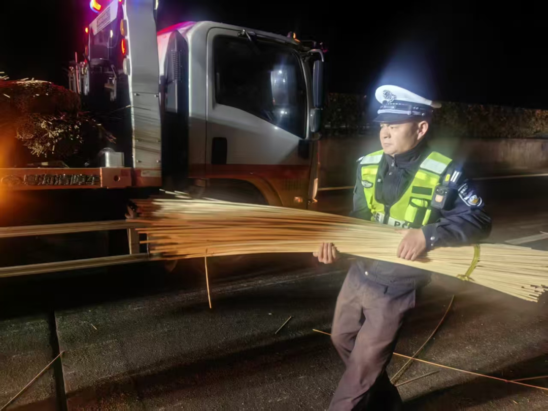 由于是高海拔路段,天黑速度快,加之常年货车流量大,夜间清障的危险系数极高。眼看夜色将至,关键时刻,南平高速交警支队六大队和平中队中队长刘亚伟振臂一呼:“同志们,来,一块干!抓紧抢通!”话音刚落,现场的行政执法、路勤、养护等部门的十余名工作人员,纷纷响应,对百捆重达20公斤的竹篾进行搬运,在一个半小时内迅速抢通了路段,保障了道路平安畅通。 |