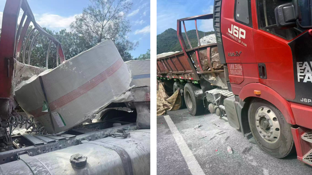 收到警情后,宁德高速交警支队二大队霞浦中队民警迅速赶赴现场,发现一辆重型半挂牵引车停靠在快车道位置,车内运载货物向前倾倒,挤压车头,车辆及货物均有不同程度损坏。所幸事故未造成人员受伤。