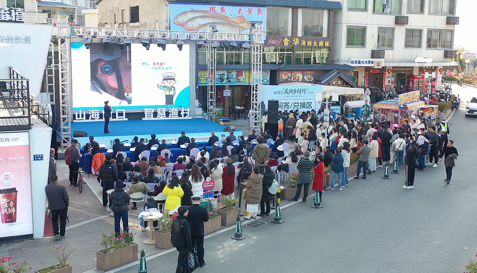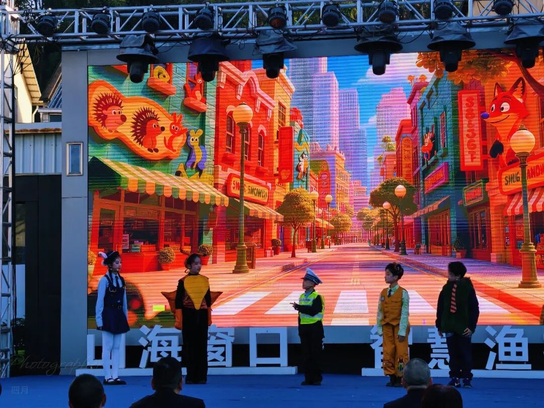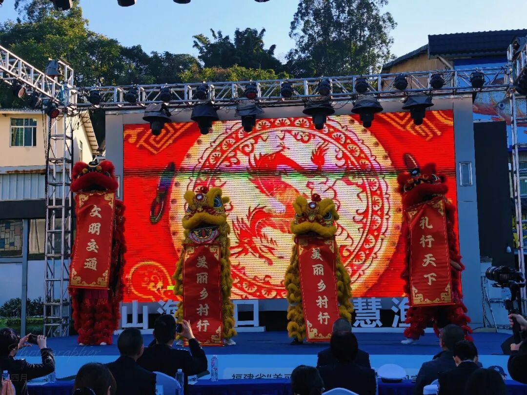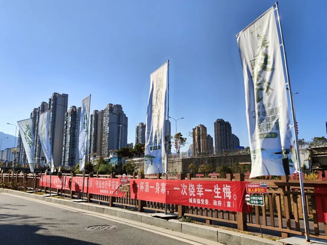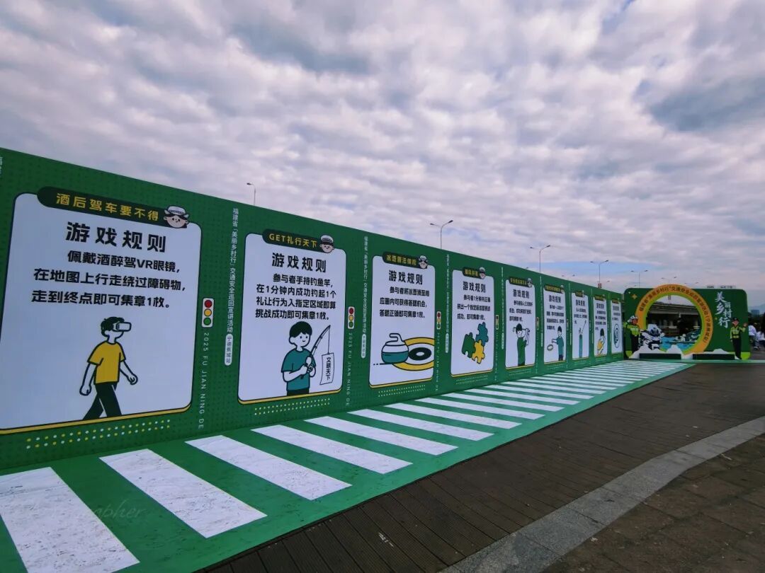 03 视觉全覆盖 道旗、路插、主舞台背景等统一视觉设计,将蕉城金蛇头村装点成交通安全宣传的生动课堂。