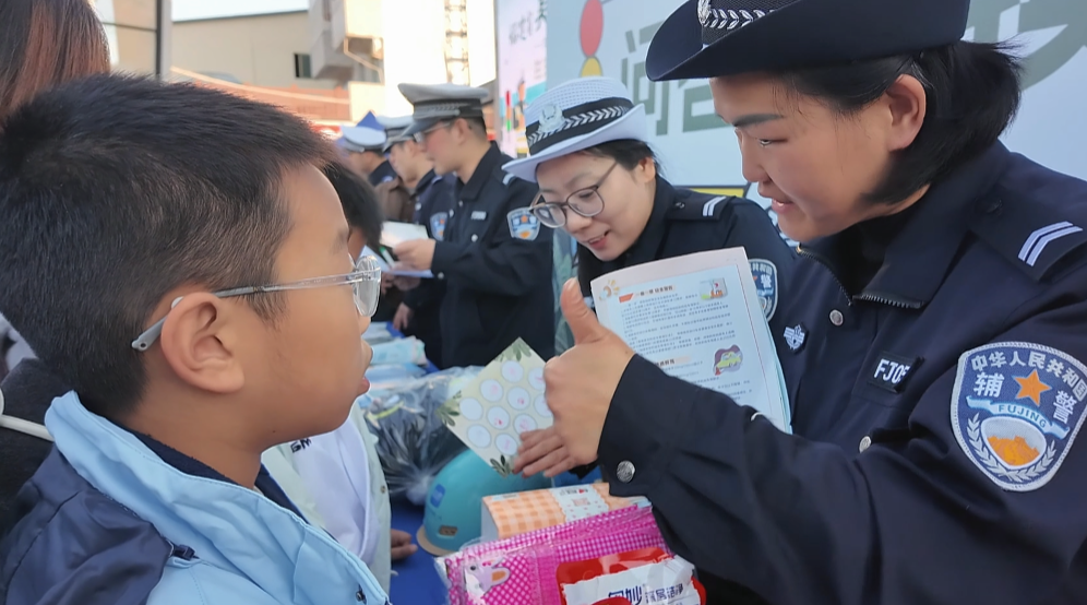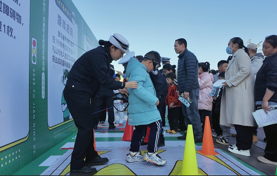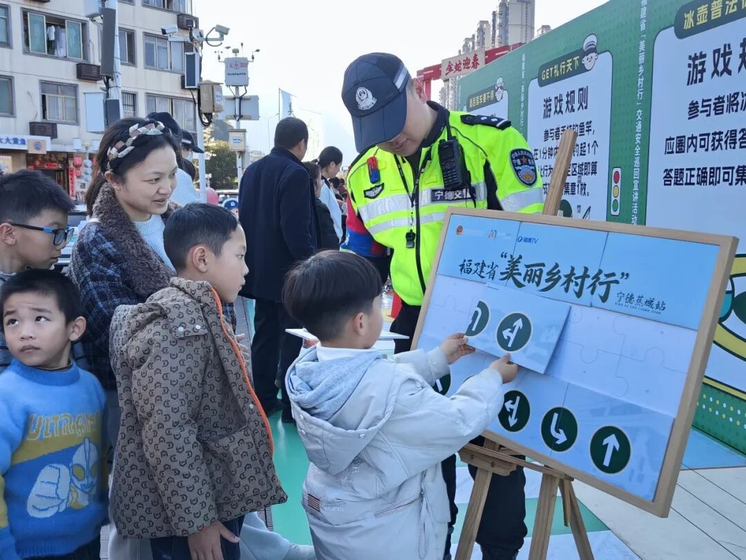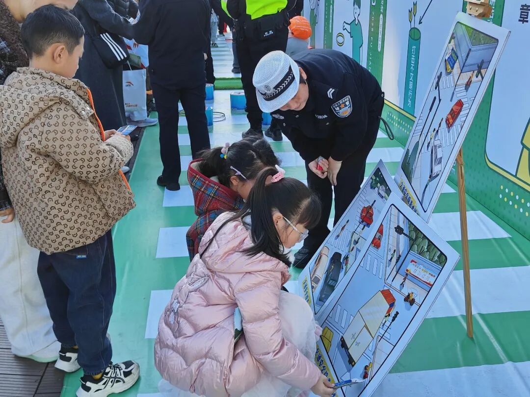 01 知识挑战类 磁吸拼图摊位前,大家聚精会神地拼接交通标志;交通隐患大找茬游戏则考验着大家的“火眼金睛”。