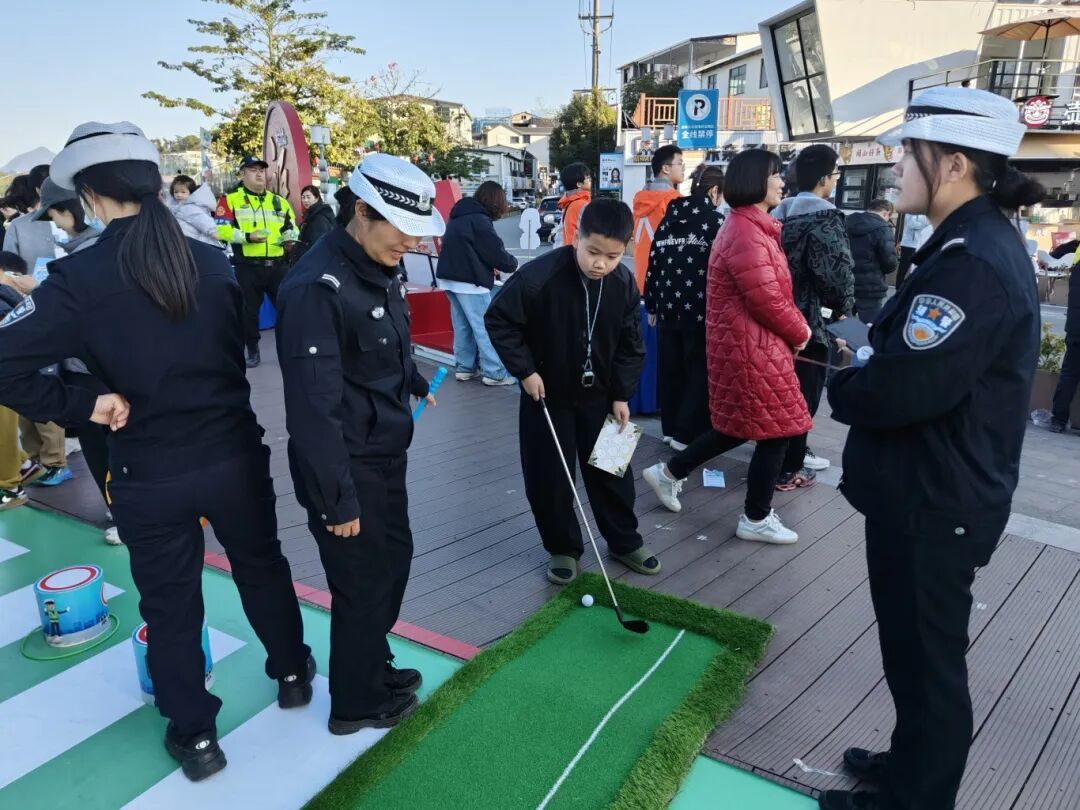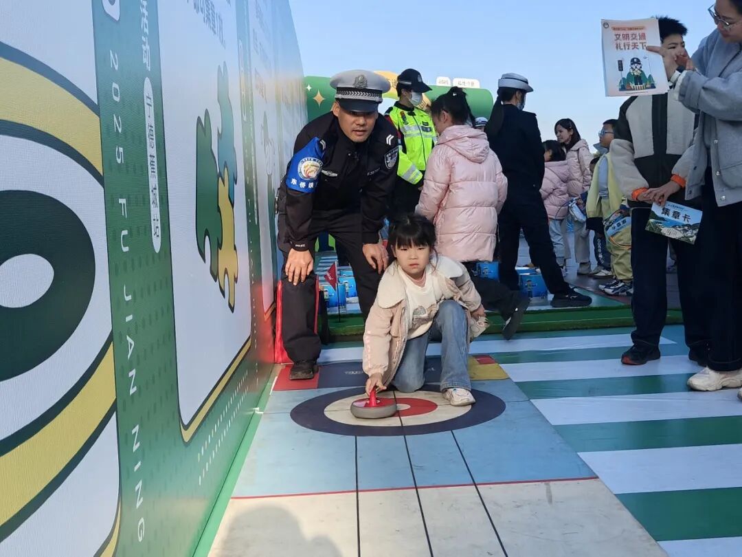 03 趣味竞技类 融合交通安全知识的陆地冰壶、Get礼行天下 、投壶挑战、安全抵达高尔夫等游戏前排起了长队,成功通关即可集章,欢声笑语不断。