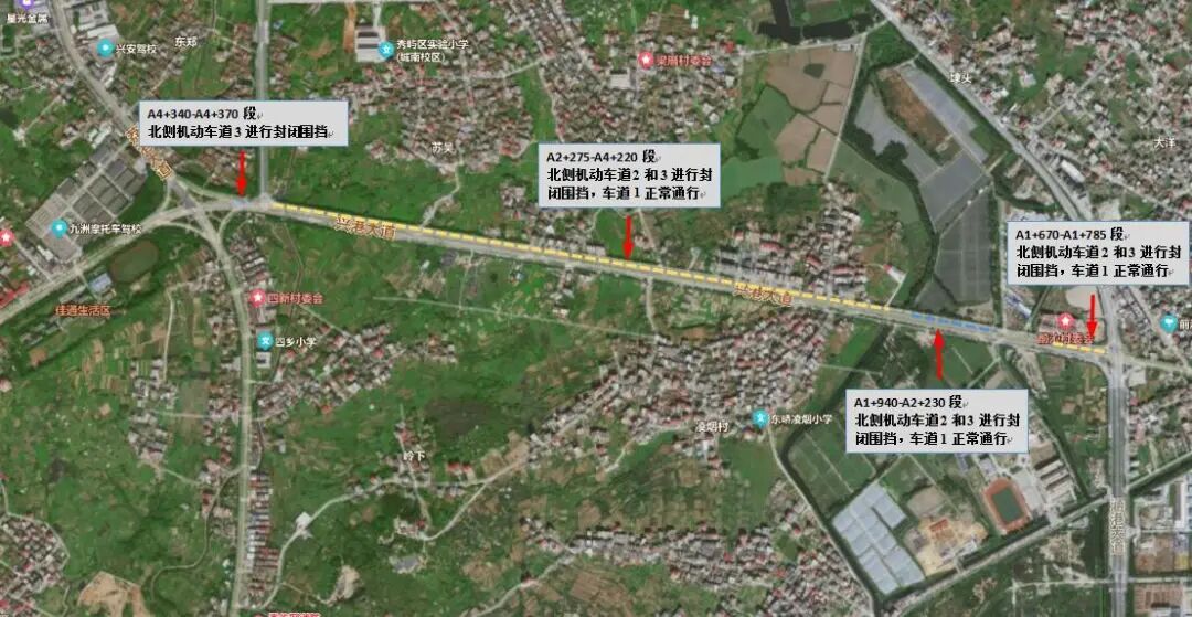 莆田市公安局交通管理支队秀屿大队关于秀屿区部分路段占道施工交通管制的通告 因魏东泵站出水管开挖、路面修复工程和秀屿区东峤镇霞东村八工区路口涵洞及排洪闸工程施工需要,为保证施工期间道路交通安全、畅通,根据《中华人民共和国道路交通安全法》第三十九条规定,决定对涵港大道、兴港大道部分路段以及东峤镇霞东村八工区路口实行临时交通管制。 具体通告如下: 01 笏石街道、东峤镇 秀屿区兴港大道A1+670-A1+785、A1+940-A2+230、A2+275-A4+220段,对兴港大道北侧车道2和3进行封闭围挡,车道1正常通行;A4+340-A4+370段,对兴港大道北侧车道3进行封闭围挡,道路变窄,减速慢行。 施工时间:2025年12月30日至2026年3月19日