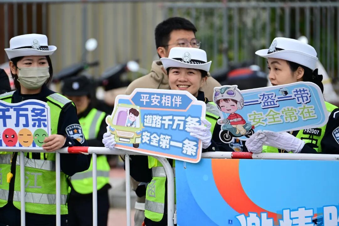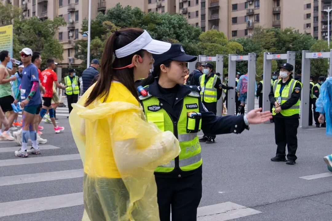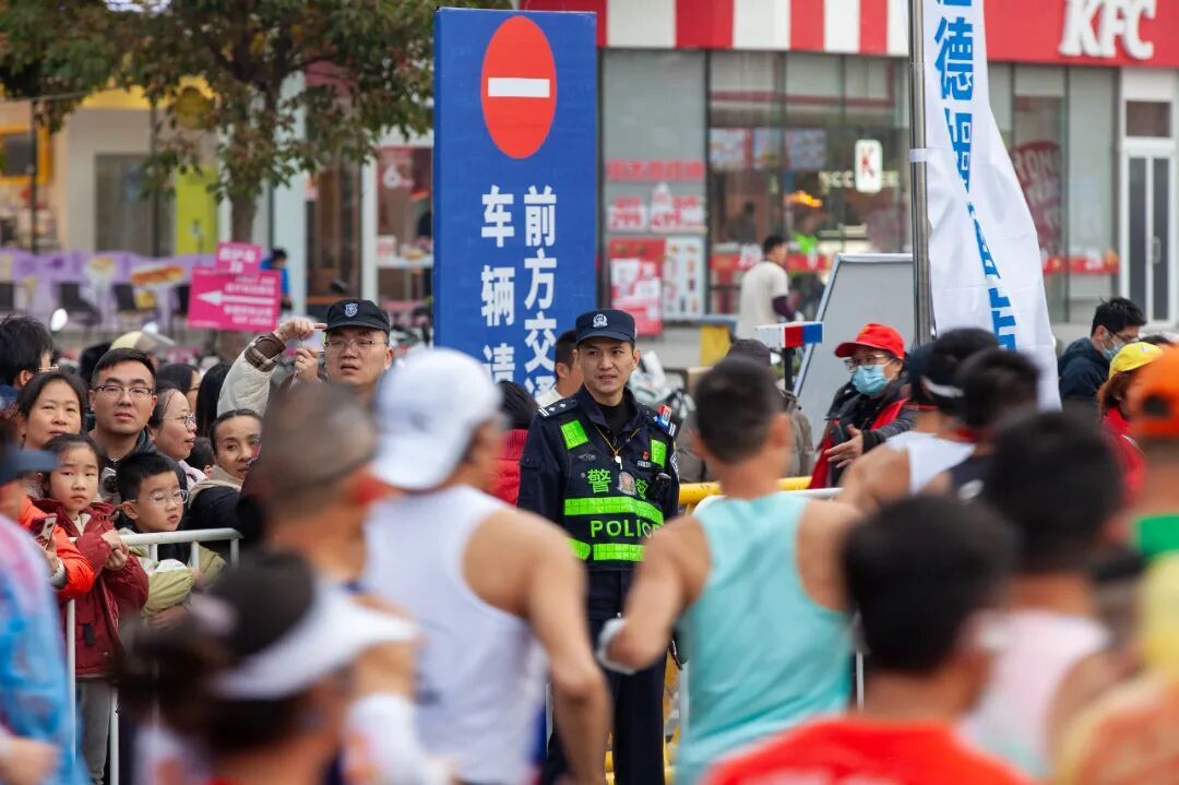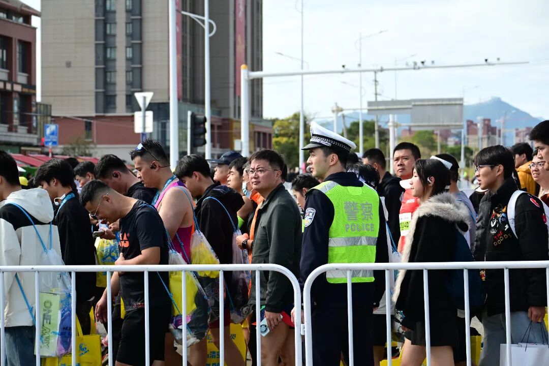 发令枪响 参赛选手集体出发 向自己的体能极限发起挑战 在赛道沿途 民警辅警时刻守护、全程在线 耐心引导人群、维护现场秩序 加强临时赛事周边道路交通管理 一路护航每一个奔向热爱的你