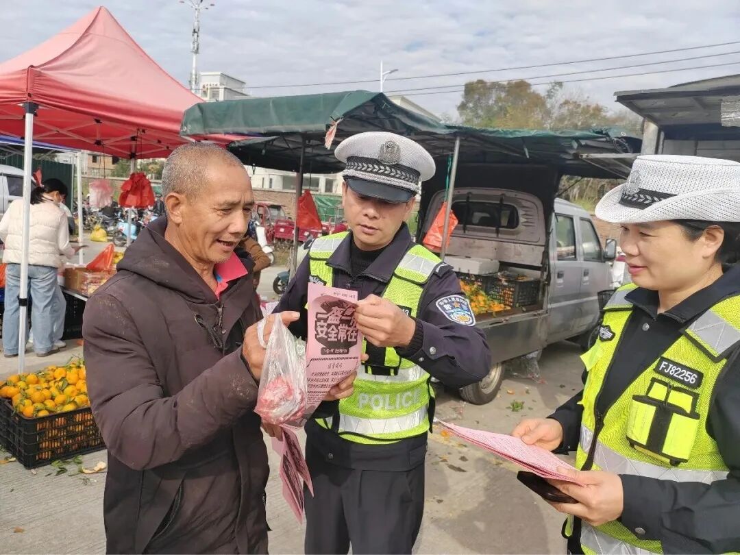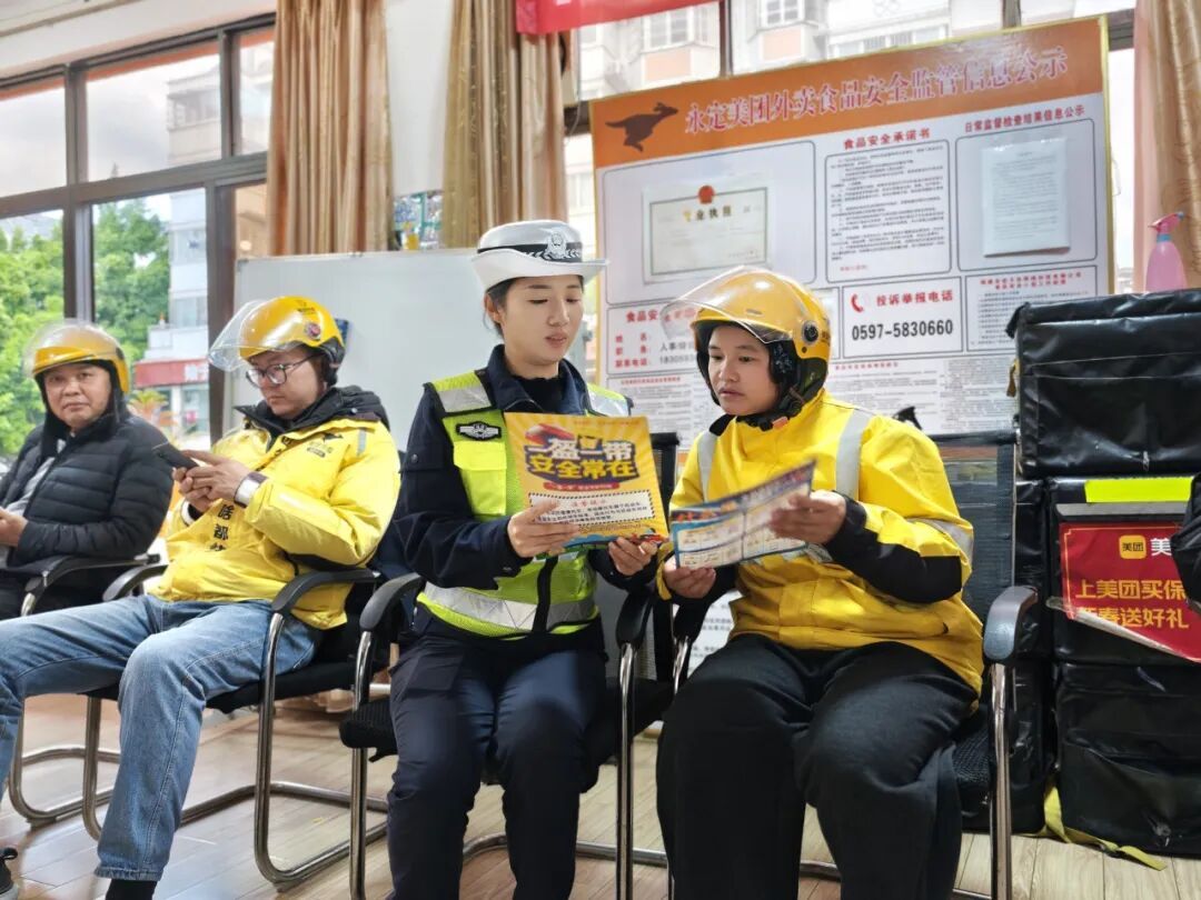 ▲漳平大队 3 交安宣传 深入各辖区企业、客运站、乡镇等地,开展交通安全宣传活动,向群众发放交通安全宣传图册、提醒广大交通参与者乘车时全程规范系好安全带。