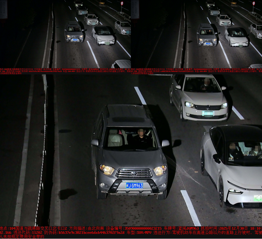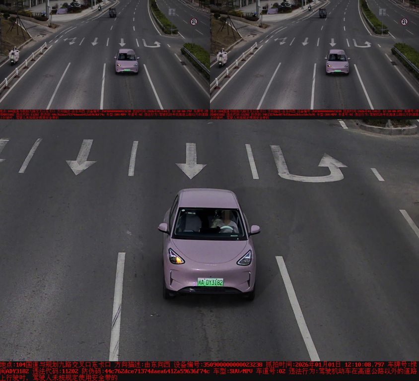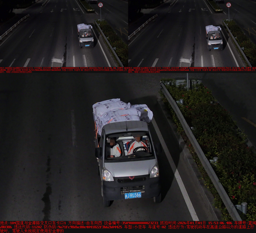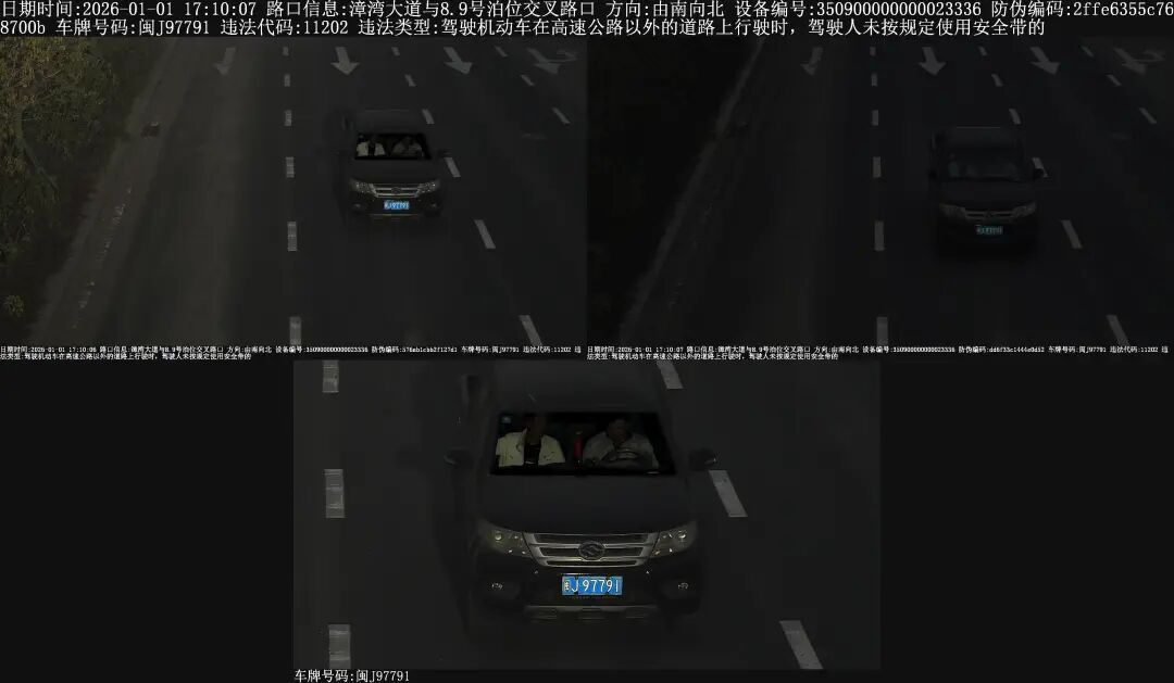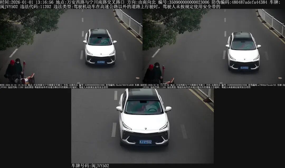 违法时间:2026/1/1 17:10 违法地点:宁德市漳湾大道(下塘至鸟屿段)疏港公路至鸟屿岛 违法内容:驾驶机动车在道路上行驶时,机动车驾驶人未按规定系安全带 处罚措施:罚100元 记1分 闽JRU386 06