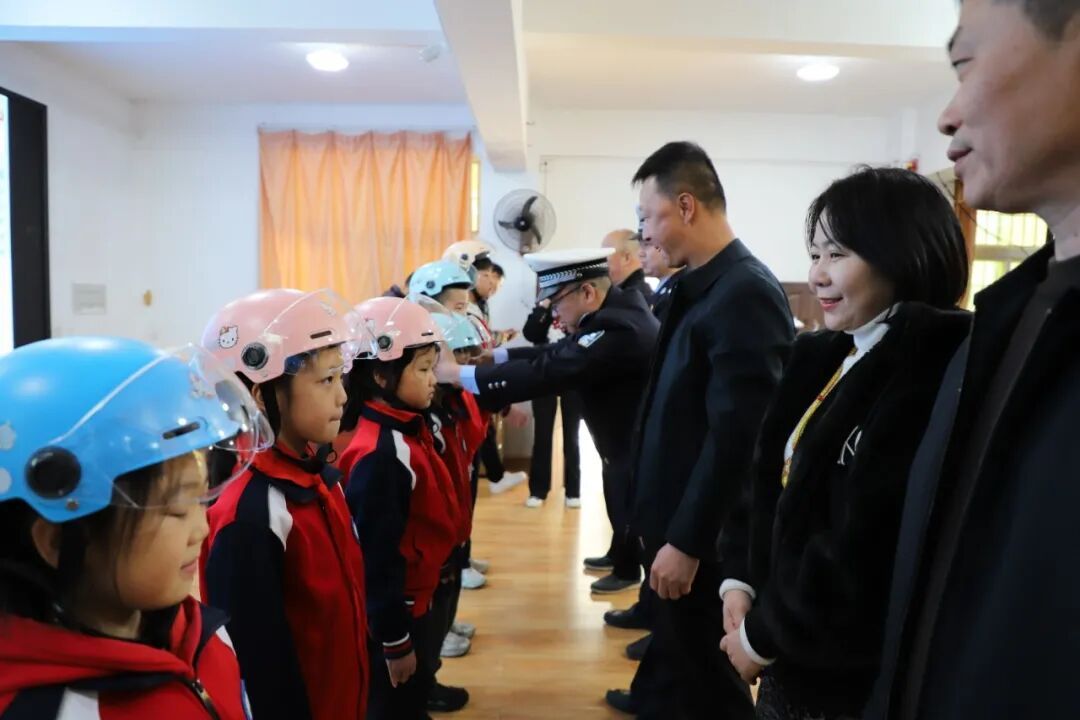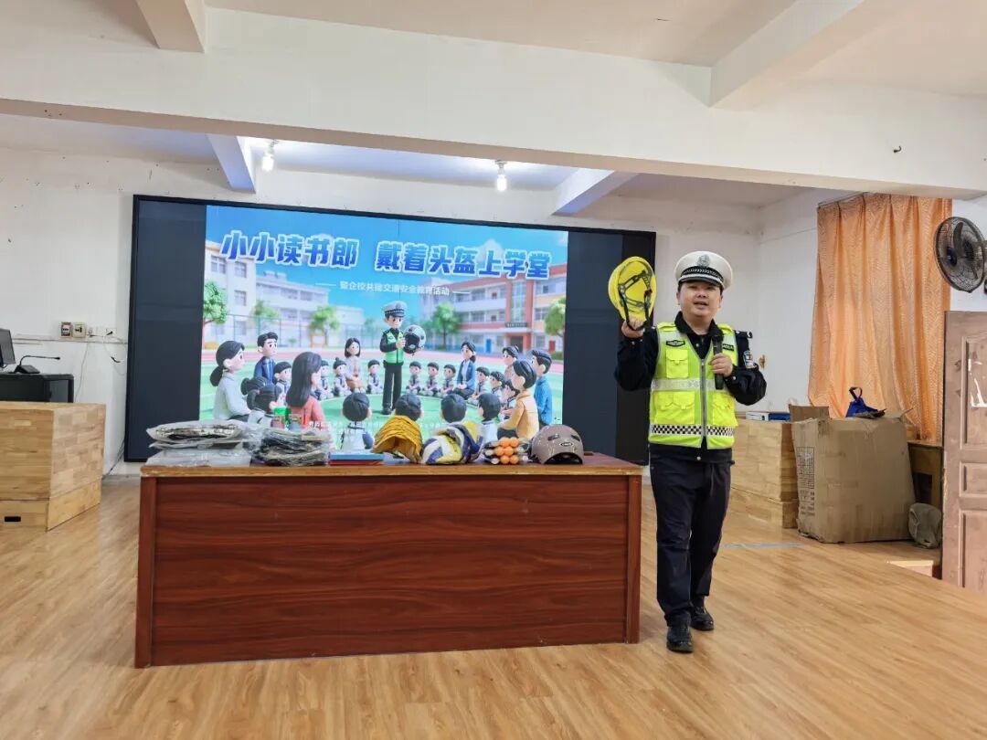 活动现场,福建牡丹花建材有限公司向首批试点学校之一埭头第一中心小学捐赠了一批符合国家标准的安全头盔,确保每位乘坐二轮车上下学的学生都能获赠一顶。企业代表表示,“希望通过我们的实际行动,唤起更多社会力量关注学生交通安全。”六名学生代表上台,戴上了企业捐赠的安全头盔。 生动有趣的安全课堂