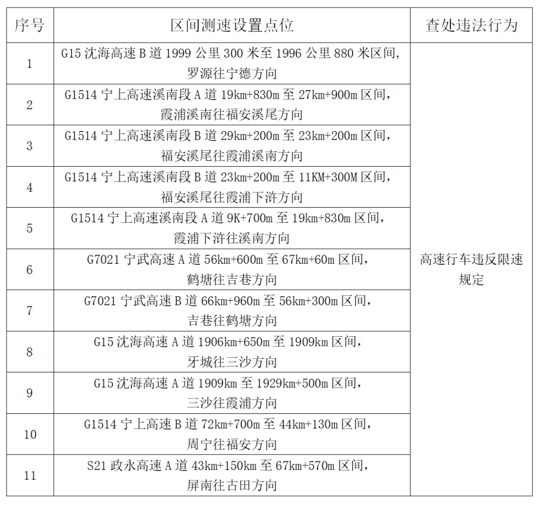 (图片可点击放大) 二、区间测速点位列表