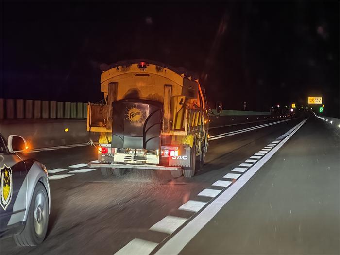 8日夜间至9日凌晨,辖区气温持续走低并降至零度以下,建宁均口、明溪、大田、洋中等中队闻令而动,联合高速交警、养护部门秉持"前置预防、快速处置"的原则,迅速出动,直奔辖区泉南、莆炎、福银、建泰高速公路的重点桥梁、长下坡等路段,果断开展"撒盐融冰"作业。此次作业共抛撒工业盐约3.5吨,有效抑制了路面结冰风险。 下一步,支队将持续密切关注天气变化趋势,常态化做好应急值守与巡查防控工作,持续深化多部门联动协作,以"时时放心不下"的责任感筑牢冬季道路安全防线。(三明高速执法支队 江捷辉、余磊、陈种九) |