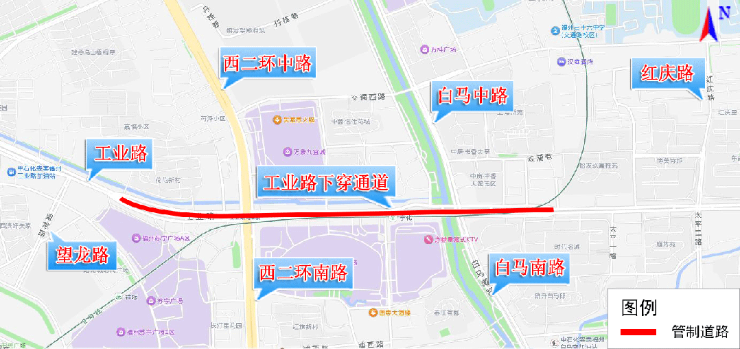 经福州市国防动员办公室申请,因工业路下穿通道修缮施工需要,根据《中华人民共和国道路交通安全法》第三十九条规定,决定从2026年1月18日至施工结束(工期约1个月),每日23时至次日6时,根据施工进展,视情对工业路下穿通道实施临时交通管制,禁止机动车通行。 遇有道路施工临时交通管制,请广大市民按照交通指挥人员指挥和交通标志、标线指示有序通行。 特此通告 福州市公安局交通管理局 2026年1月13日 |