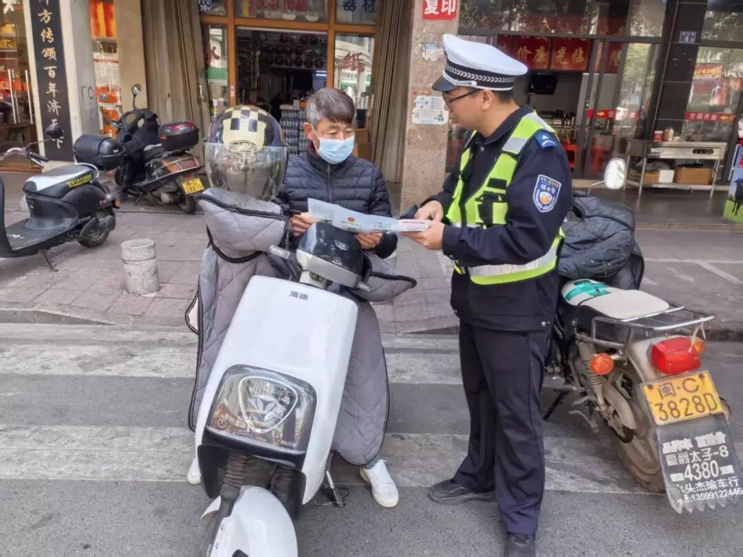 为进一步规范电动自行车通行秩序,防范化解交通安全风险,近期,泉州交警支队统筹部署鲤城、丰泽、台商区交警大队,同步开展电动自行车交通违法专项整治行动,同时深入辖区电动车销售点筑牢源头宣传防线,以“查处+宣教”双轮驱动,全力营造安全、有序、文明的道路交通环境。 路面严查不松懈,违法整治全覆盖 三地交警大队结合辖区交通实际,精准锁定温陵路、涂门街、九一街、丰泽街、杏秀路等重点路段,以及隧道口、高架桥、快速路、学校周边、商业街区、交通路口等车流人流密集区域,采取“定点设卡+流动巡查”的组合模式,对电动自行车突出交通违法行为展开集中整治。 重点整治未佩戴安全头盔、逆向行驶、不按规定车道行驶及非法改装等常见交通违法行为。行动中,民警坚持“教育与处罚相结合”的原则,对查获的违法驾驶人,不仅依法予以相应处罚,还引导至临时学习点,通过观看交通安全事故警示视频、讲解法规条款等方式,让其深刻认识违法危害。“我就想着赶时间,没戴头盔,看了视频才知道这是拿生命开玩笑!”在通淮街路段,因未戴头盔被拦下的王先生,经现场教育后懊悔不已,并承诺今后一定规范骑行。 鲤城交警还聚焦上下学时段,重点查处学生及接送学生的家长未戴头盔、超员等违法行为,并启用监控抓拍设备,对未按规定佩戴安全头盔、不按道行驶等行为实施精准管控,形成持续严管态势。 源头宣教筑防线,安全理念深入人心