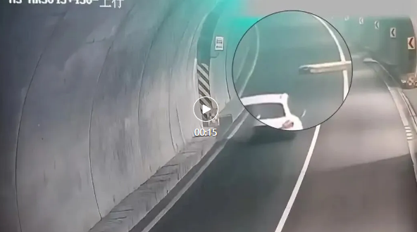 2026年1月11日,长深高速永安路段隧道内,一辆货车因货物捆扎不牢,一张床垫在行驶中掉落。