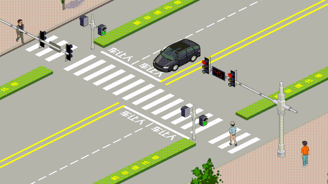 距路口约30米处:开始瞭望路口情况,并减速行驶; 距路口约20米处:近距离观察路口情况,发现有行人或非机动车横穿道路时,车速应降至15公里/小时以下; 距路口约10米处:再次观察确认路口情况,发现行人或非机动车正在横穿道路时,应主动停车让行。 礼让斑马线 不只是“车让人” 还要记住后半句:人快走 车让人,人快走 快快通过莫停留 ▼ 01 观察后 后通过 行人、非机动车过人行横道时更需提高警觉和判断力,因为你并不知道车辆是否一定会文明礼让,千万不要把生命安全交到他人手上,不要认为在人行横道就可以放心大胆地走过去,一定要做到:先观察,后通过。