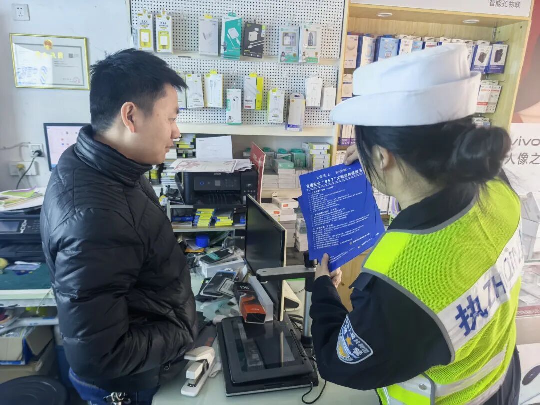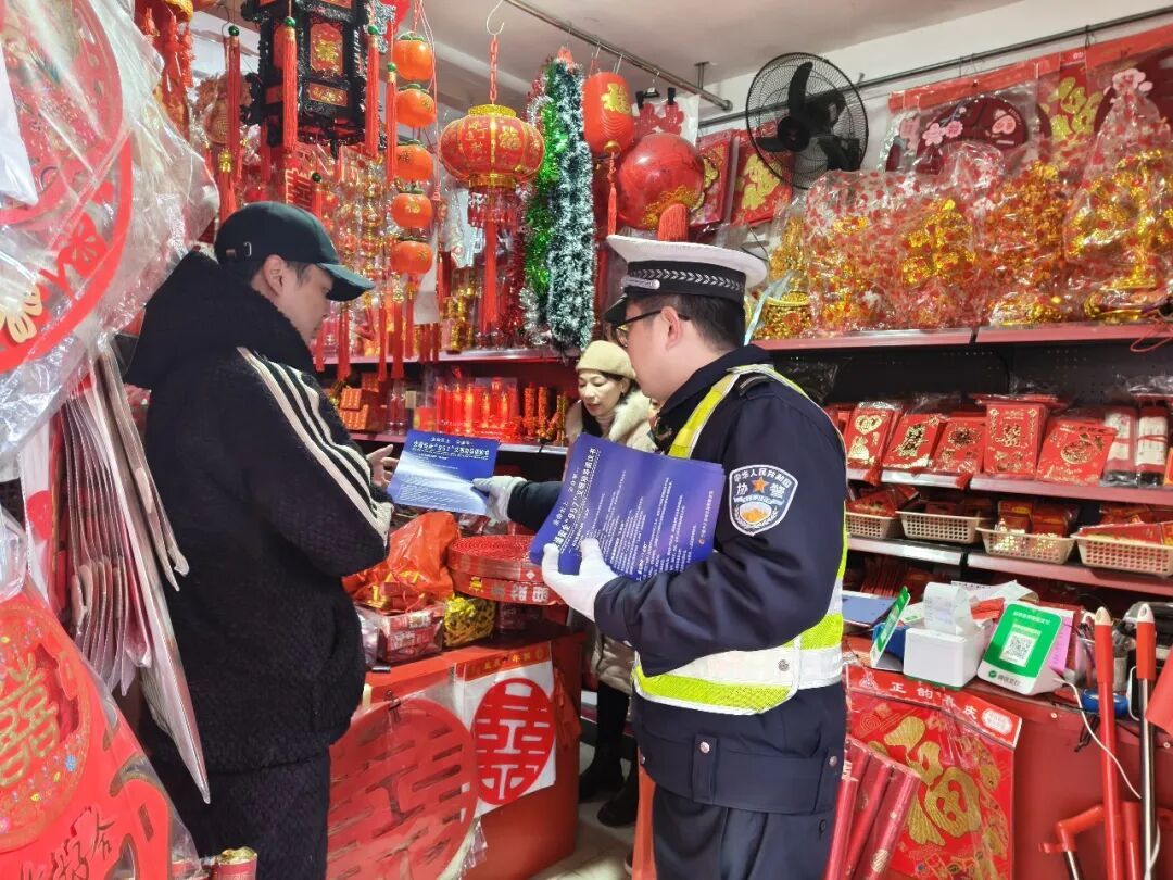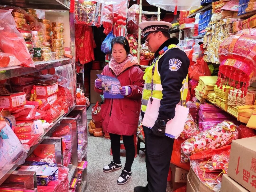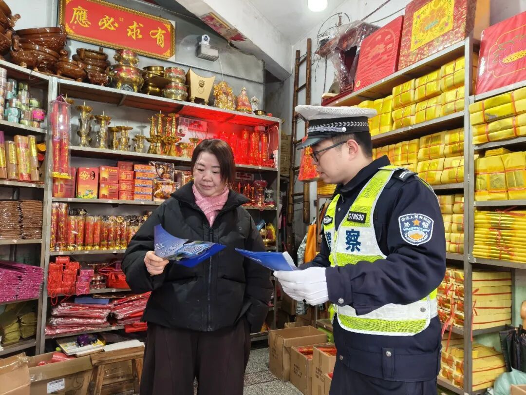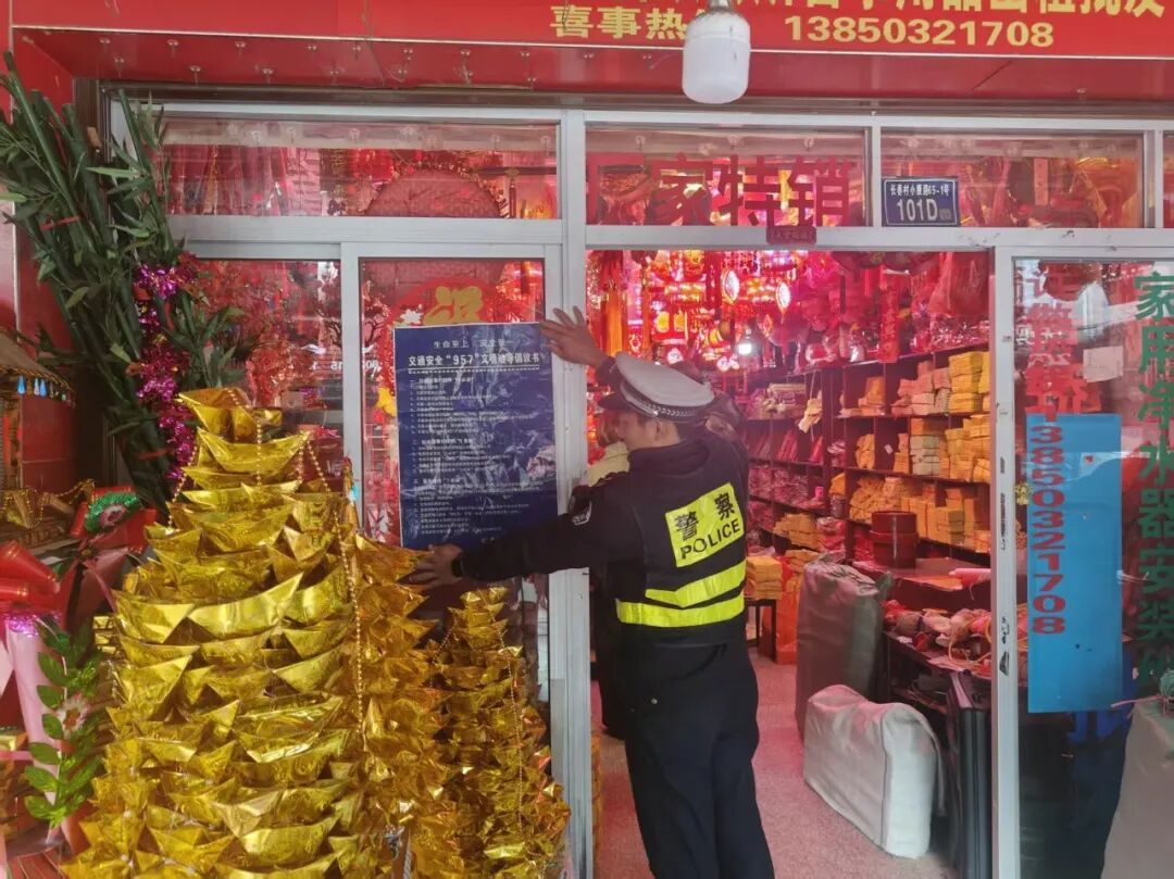 🏪 古田 店铺化身宣传点 店员共筑安全线 交警来到红白事用品商铺分发倡议书,并与店员深入沟通,邀请他们协助在接待事主时,准确传递“9必讲、5告知、7必劝”核心内容,筑牢事前宣传防线。