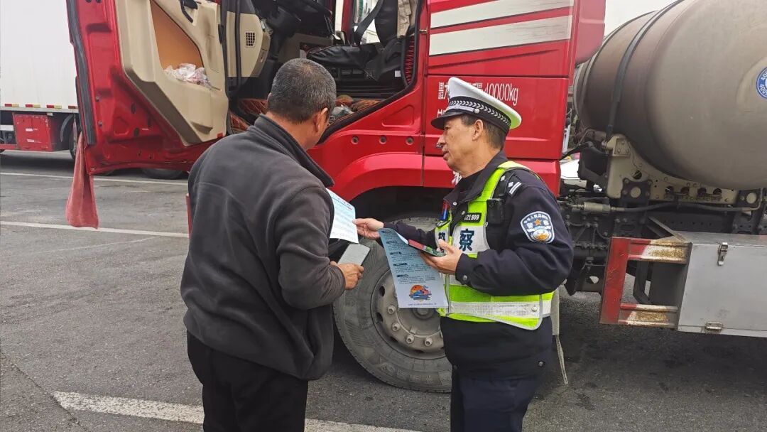 ▲二大队进服务区面对面宣传冰雪天气行车注意事项
