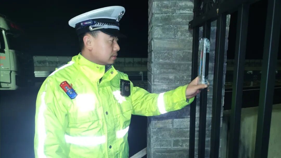 ▲二大队持续监控辖区易结冰路段气温