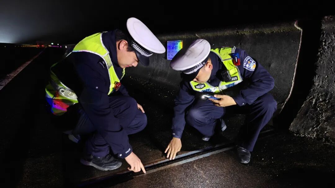 ▲四大队摸排桥梁接缝位置结冰情况 巡逻驻点
