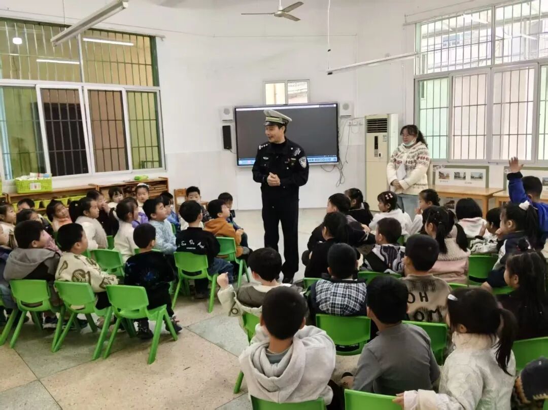 福州高速交警一大队民警深入东瀚中学,开展以“寒假启程,安全随行”——“高速交警致敬每一位路上的少年”为主题的交通安全宣传教育活动。民警通过发放交通安全宣传资料、黏贴宣传挂图、利用阳光大课间时间以讲座的形式对参加活动的近两百名初中生及教职工等进行深入浅出的交通安全教育授课活动。 走进起步中心幼儿园