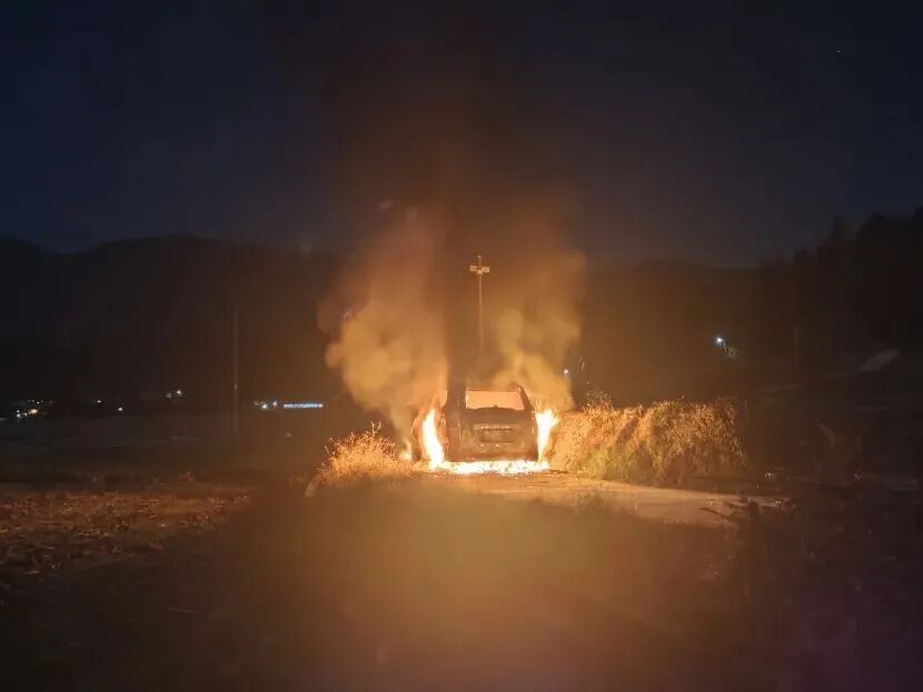 ▲近日,三明永安苏坑有小车自燃,现场无被困人员。经过救援火势被及时扑灭。