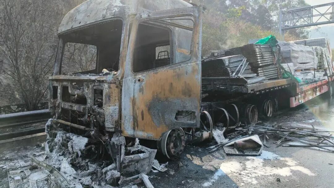 ▲近日,在甬莞高速三平收费站往漳州方向,一辆运载钢材的货车因故障发生自燃,所幸扑灭及时没有造成人员伤亡和更大损失。