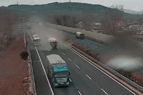 ▲货车的后轮突然爆胎随后起火引发车辆自燃。