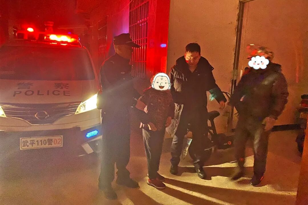 ▲交警帮老人联系家属 “慢一点,慢一点” 考虑到老人衣衫单薄 且夜间气温较低 巡特警民警辅警 随即将老人搀扶上警车 将老人安全护送回家