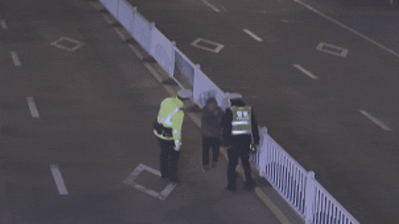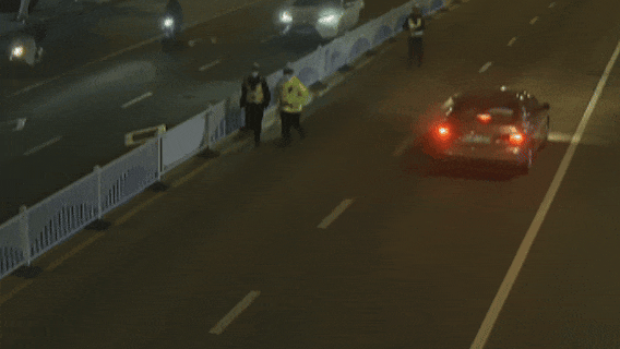 ▲执勤交警飞奔上前了解情况